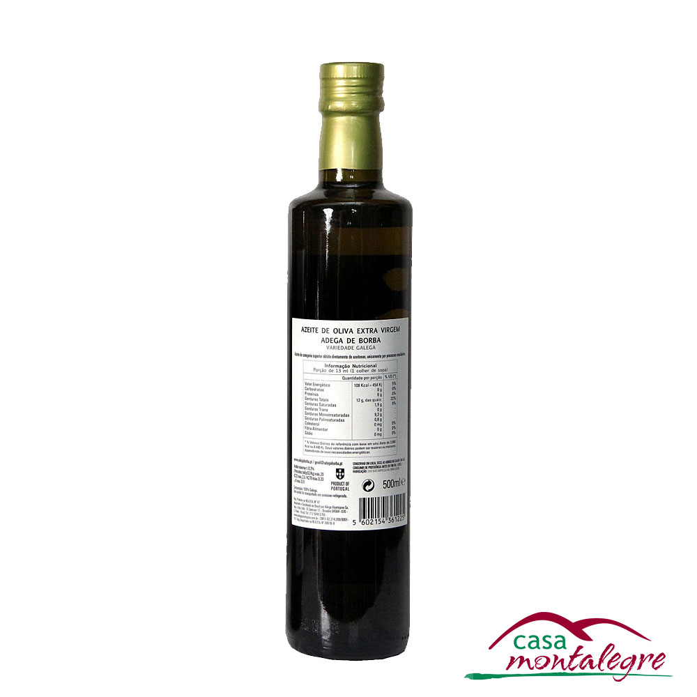O Azeite Adega de Borba Extra Virgem transporta a qualidade reconhecida dos vinhos da Adega de Borba. Trata-se de um Azeite com denominação de origem protegida (DOP) Norte Alentejano e que transporta o gourmet para a riqueza gastronômica da região.