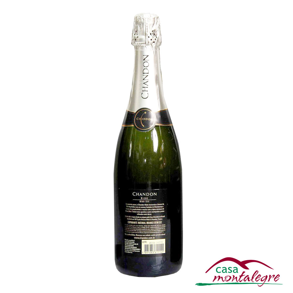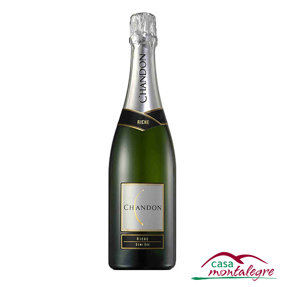 O Espumante Chandon Riche Demi Sec é levemente suave, o Chandon Riche harmoniza o frescor do Riesling Itálico com os aromas frutados do Chardonnay e cresce assim em complexidade e maciez com a típica estrutura do Pinot Noir.