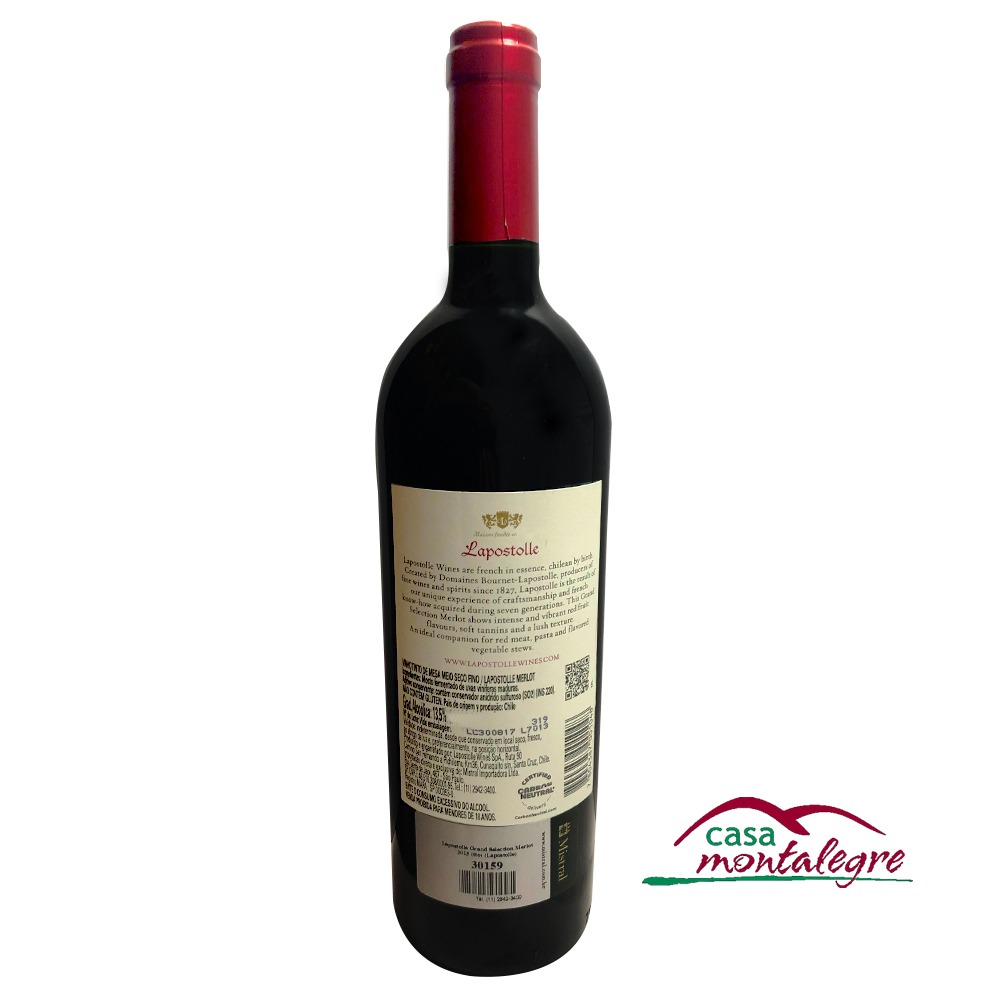 O Vinho Lapostolle Gran Selection Merlot tem um aspecto límpido, intensidade profunda de coloração avermelhada. No nariz, sua condição é limpa, intensidade pronunciada, com características de frutas vermelhas e frutas negras.