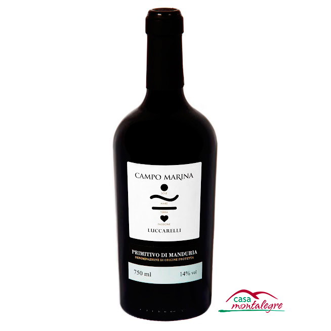 O vinho Vinho Luccarelli Campo Marina Primitivo Di Manduria DOP, corresponde a parreiras de 20 à 40 anos. Apresenta coloração vermelho rubi intenso com reflexos violáceos. Apresenta aromas de frutas bem maduras como por exemplo cereja e ameixa, também cacau e baunilha.